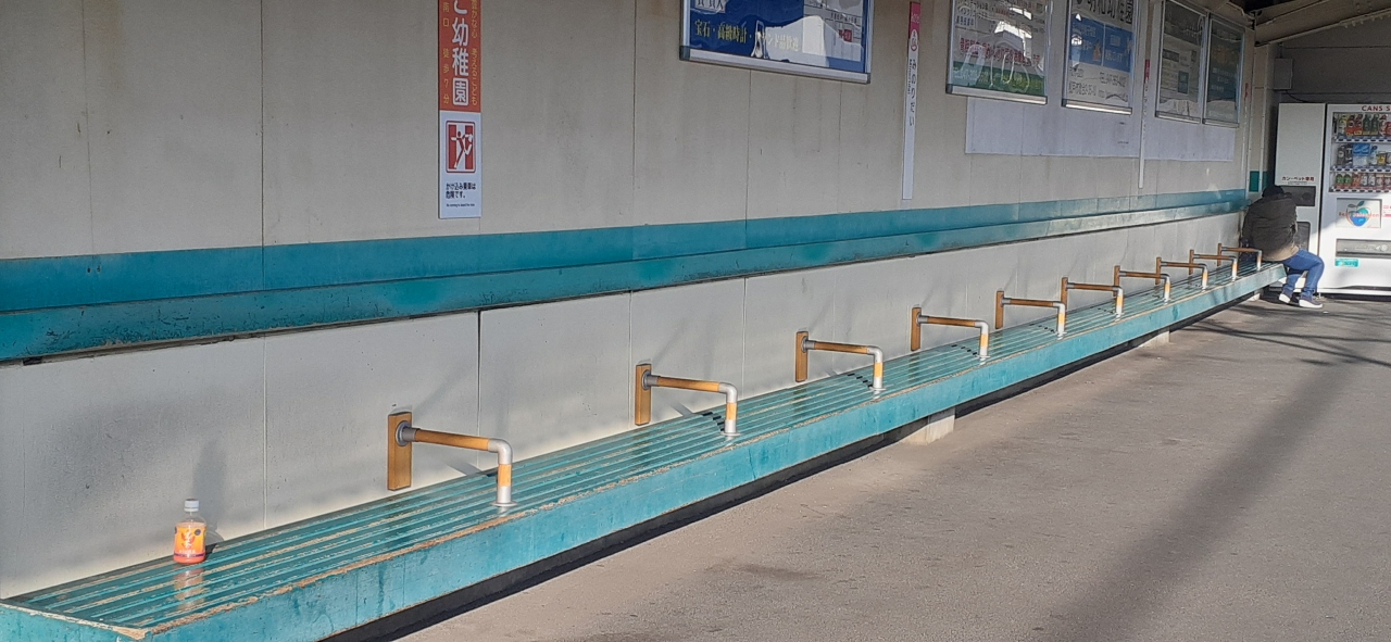 昭和時代によくあった長椅子で地方では残ってるところはありますが、都市圏ではとても珍しいレトロなしろものです。