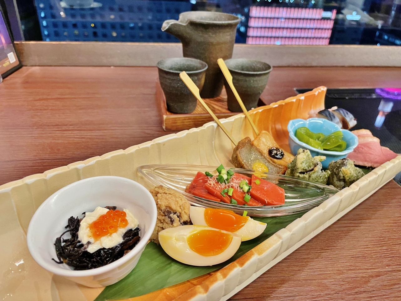 伊勢丹の9階にある、京の創作料理をカジュアルにいただけるお店です。予約は満席だったので開店20分程前に行き、カウンター席に座ることができました。オープンビューの店内からは京都タワーが目の前に、街の景色も一望できます。日暮れ間もない時間だったので、夕焼け空から夜景へ変わっていく空の色が綺麗でした。見た目も華やかな京三昧おばんざい盛り合わせや、シーザーサラダ、グラタンや茶わん蒸しなど、京都の地酒も頂きながら素敵な夜景とともに美味しく頂きました。