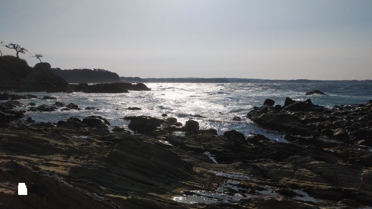 三浦海岸西側の突き出た岬のある海岸。荒々しい岩場の風景を臨むことができる。