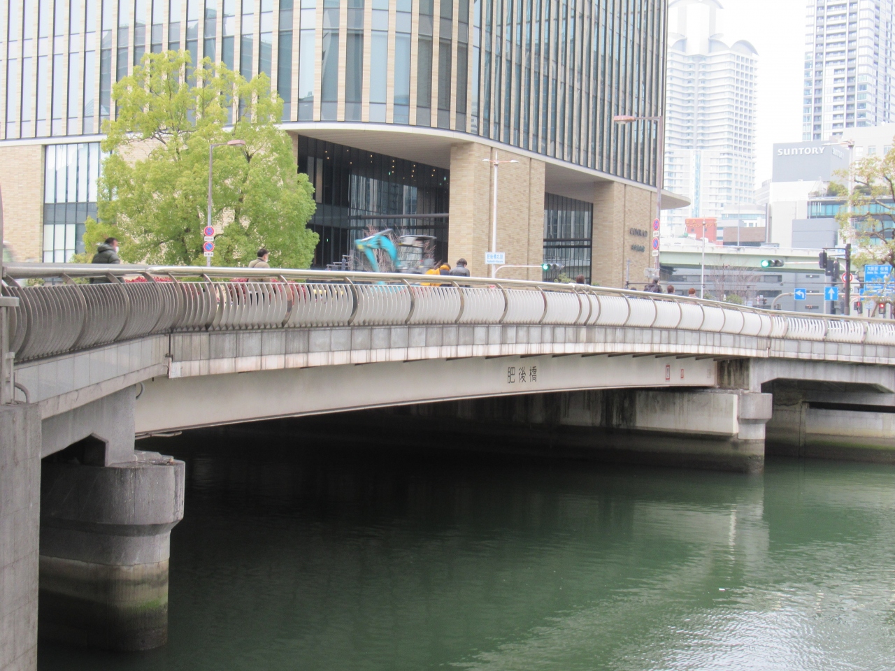 橋の南側の土佐堀1丁目に地下鉄四ツ橋線の肥後橋駅があって、肥後橋と言うと橋そのものよりも地下鉄駅の地名を指して使うことが多いです。