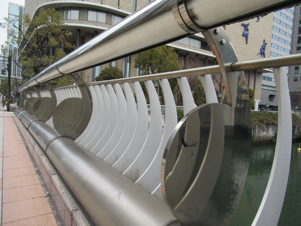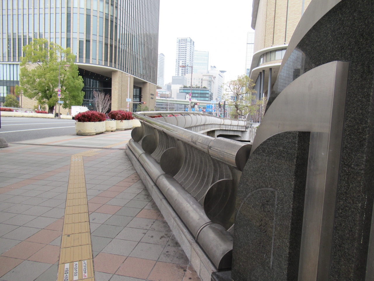 大阪を代表するフェスティバルホールがすぐ近くにあるためか橋の欄干が音符♩のマークになっています。