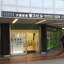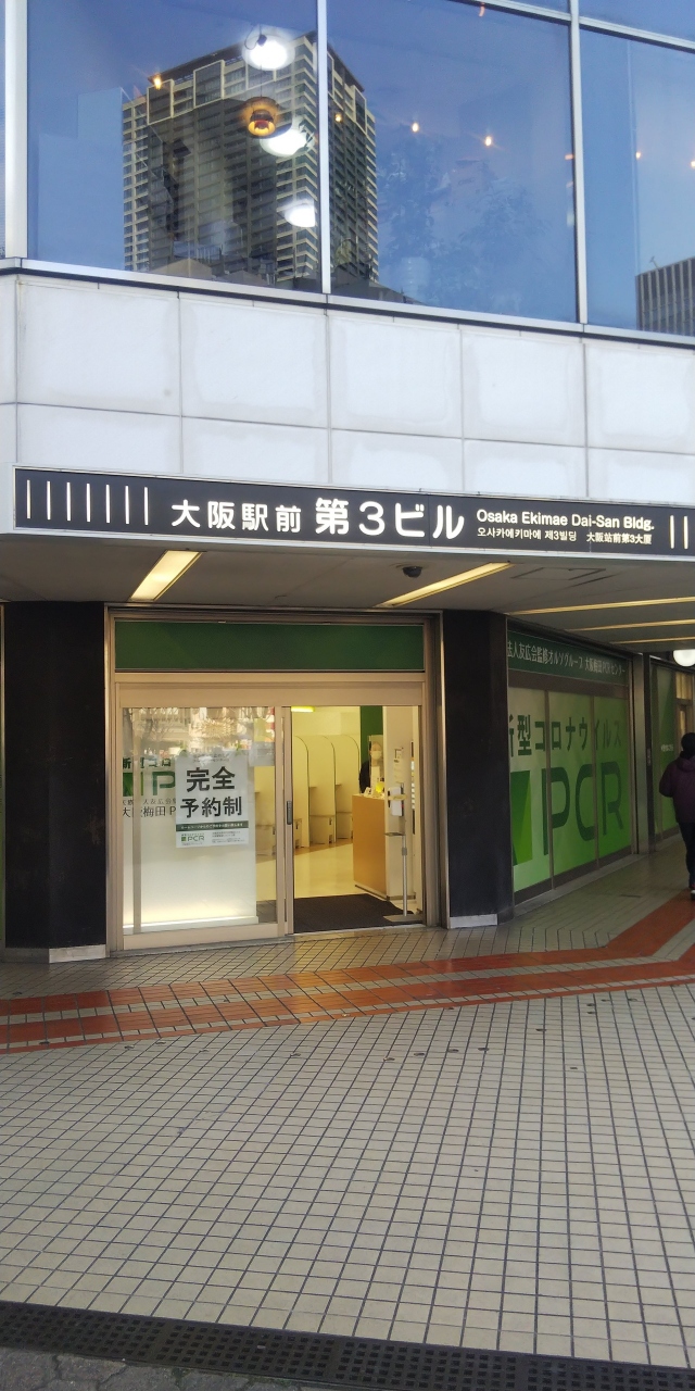大阪駅前第3ビルはJR大阪駅や大阪メトロ&阪神電車などの梅田駅のすぐ南側にある4つの駅前ビルシリーズのひとつです。地上階はオフィスがほとんどで、地下にはレストランや居酒屋、チケットショップなどが入っています。1階にはPCR検査場がありました。