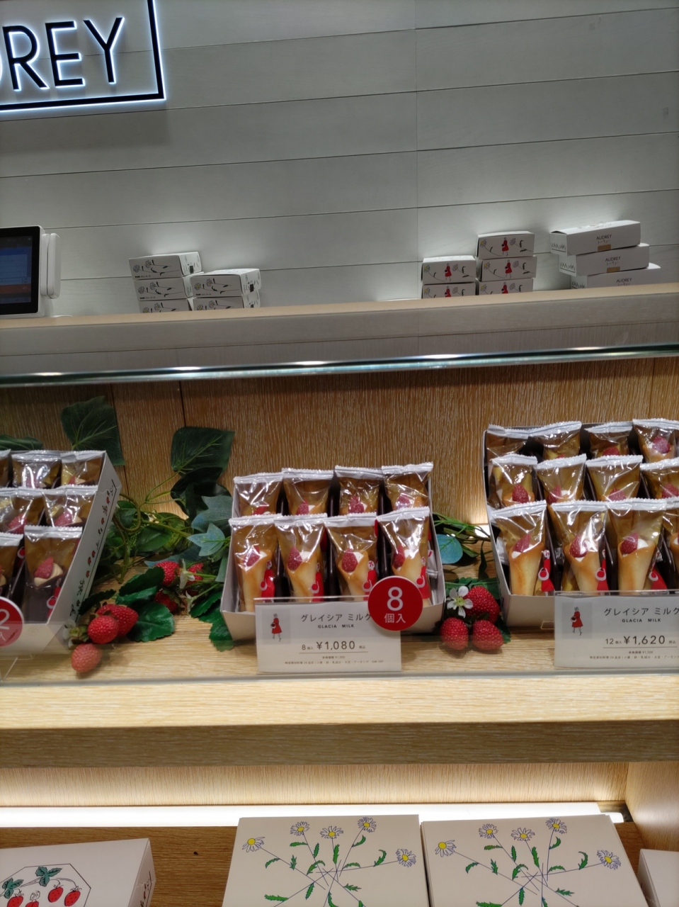 東京駅構内にある商業施設、グランスタにある人気ショップです。グレイシアというクッキー生地にドライストロベリーが乗ったお菓子です。ストロベリーの甘酸っぱさとミルクフレーバーのクリームが美味です。人気なので午後には売り切れていることも多々あります。