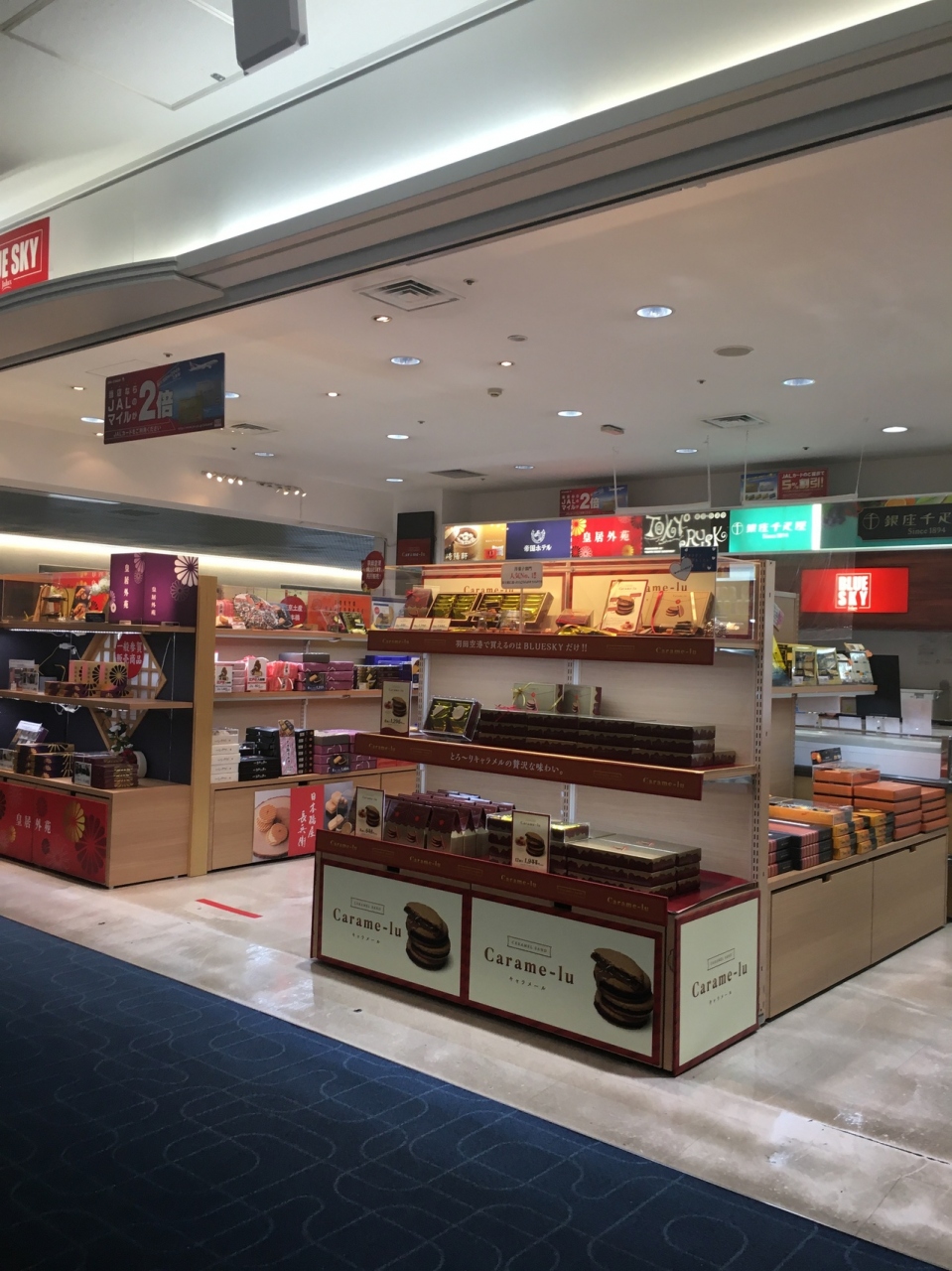 羽田空港第一ターミナルにはいくつかブルースカイの店舗がありますが、その中でも比較的大きな店舗でした。中央には高級感あるお菓子が置いてあり、右側にはドリンク、弁当が置いてありました。隣接してブルースカイのラーメン店がありました。ゆったりした店内でした