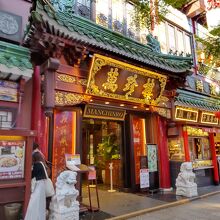 赤を基調にした立派な中国風の店舗に、メニューがずらりと並んでいます。