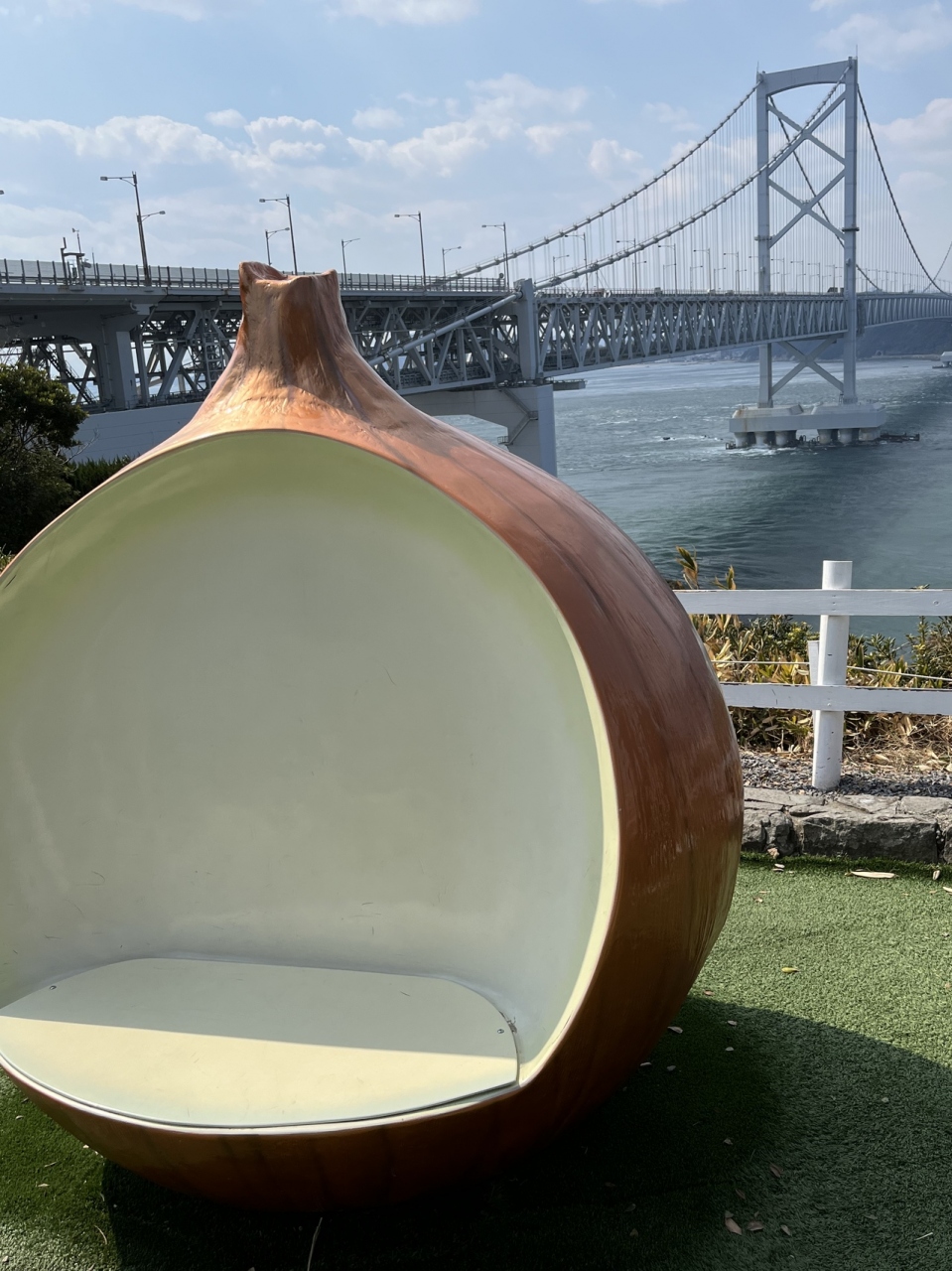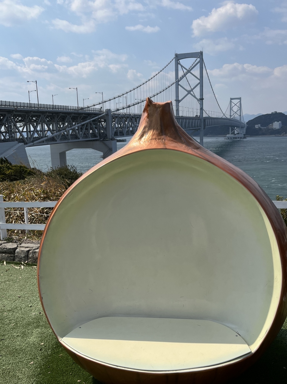 「大鳴門橋」を一望する絶景ポイントにある「おっ玉チェア」に座って