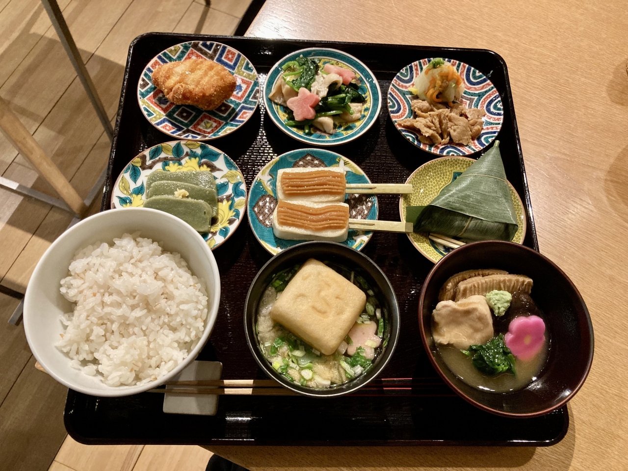 サントリー美術館併設のカフェで「加賀麩とりどり膳2,090円」をいただきました。基本的に生麩の御膳なので胃に優しく、ヘルシーで美味しかったです。年配の女性向きのランチだと思います。