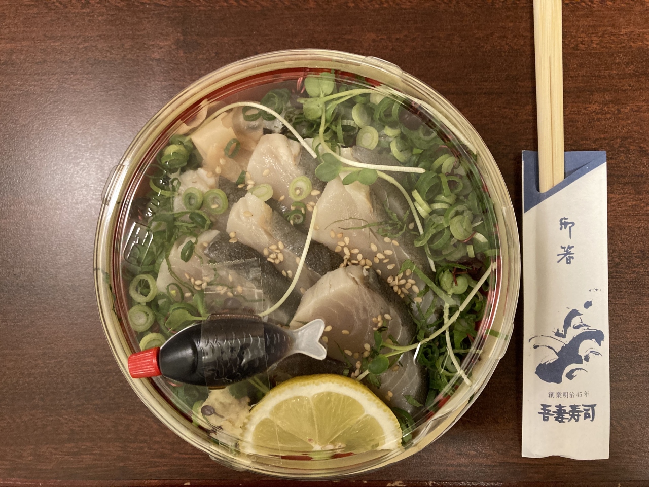 岡山駅で途中下車をして岡山名物の「鰆丼」をテイクアウトで購入しました。