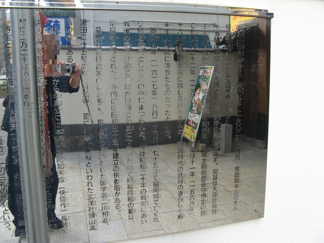 福岡城の北側、昭和通りに面して入り口山門があります。慶長七年(1602年)、黒田如水公の夫人である照福院殿が創立された古刹です。境内の半分ぐらいは墓地の様で、建物やお庭など観光的に見て興味を引くようなものは見当たりませんでした。
