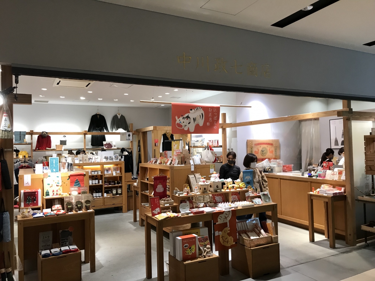 中川政七商店は、ラクエ四条烏丸のB1Fにありました。私が想像していたよりも小さなお店でした。本社のある奈良は、蚊帳生地の産地で、そこから産まれたふきんが人気商品で私も自宅で使用しています。こちらでは全国からお店が見つけ出した選りすぐりの商品を販売されているので商品を見学するだけでも新たな発見があります。間口が広く開放的で、カラフルな商品ぞろえ。奇抜な感じはなく、素朴なイメージを受けるお店です。