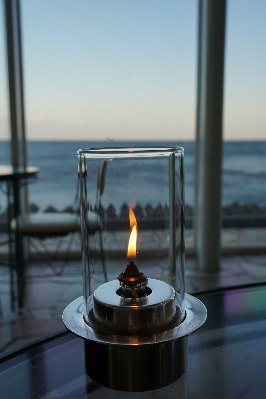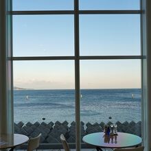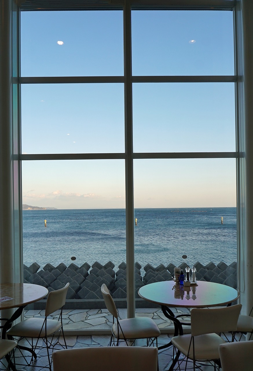 アオアヲナルトリゾートの滞在で何度か利用しました。連泊の特典で滞在中のコーヒーとすだちジュースが無料でした。またホテルの会員登録したスマホの画面で10%の割引があるので、確認したほうがお得です。飲み物と一緒に注文した鳴門金時パフェはコスパも良く、こんな巨大なパフェが1,100円なのかとびっくりしました。実際は10%割引なので990円になります。季節的に空いていましたが、大きなガラス窓から一面に青い海と青い空が広がり、地中海のどこかの島にいるような気分になれました。また、夕暮れ時の雰囲気も最高です。満月の時期に当たるとカナッペやカクテルのサービスもあるので確認したほうが良いです。