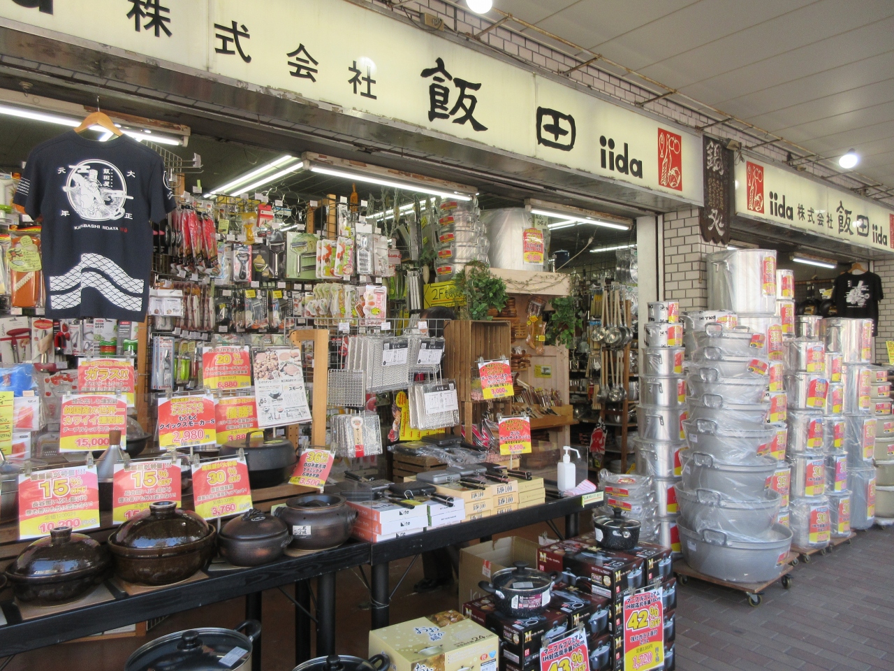 田原町駅からかっぱ橋道具街通りを北へ4分ほど歩いた右側にあります。業務用鍋各種や調理器具各種があります。店頭にあるサイズの揃った寸胴が目をひきます。家庭用の鍋やフライパンや調理器具があるので見ていて楽しいです。銀杏の殻割り、白髪ねぎカッター、餅のスライサーなど特殊器具の数々に妻は驚いていました。TVで取り上げられたことがある店で、おろしニストとして登場した方の店です。欲しかった調理器具が見つかるかもしれません。