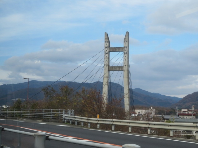 JR徳島線の一両車両は、佐古駅を出て、私の目的地の穴吹に向かっていました。川田駅を出てすぐに見えてくるのが岩津橋です。大きなコンクリート製の吊り橋で、明石海峡大橋のように真っ白ではなくて、適度に朽ちた雰囲気がいいですね。じっくり見たくて、帰りは途中下車しました。
