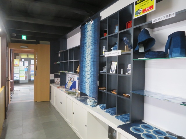 脇町のうだつの街並みの入り口にあるお店です。カフェ兼レストラン兼お土産屋さんといったお店で、こちらの店名の書かれた旗が白壁にかかっていて、古い街並みの雰囲気です。天内には、徳島県の伝統産業の藍製品があって、鮮やかな藍色が楽しめます。