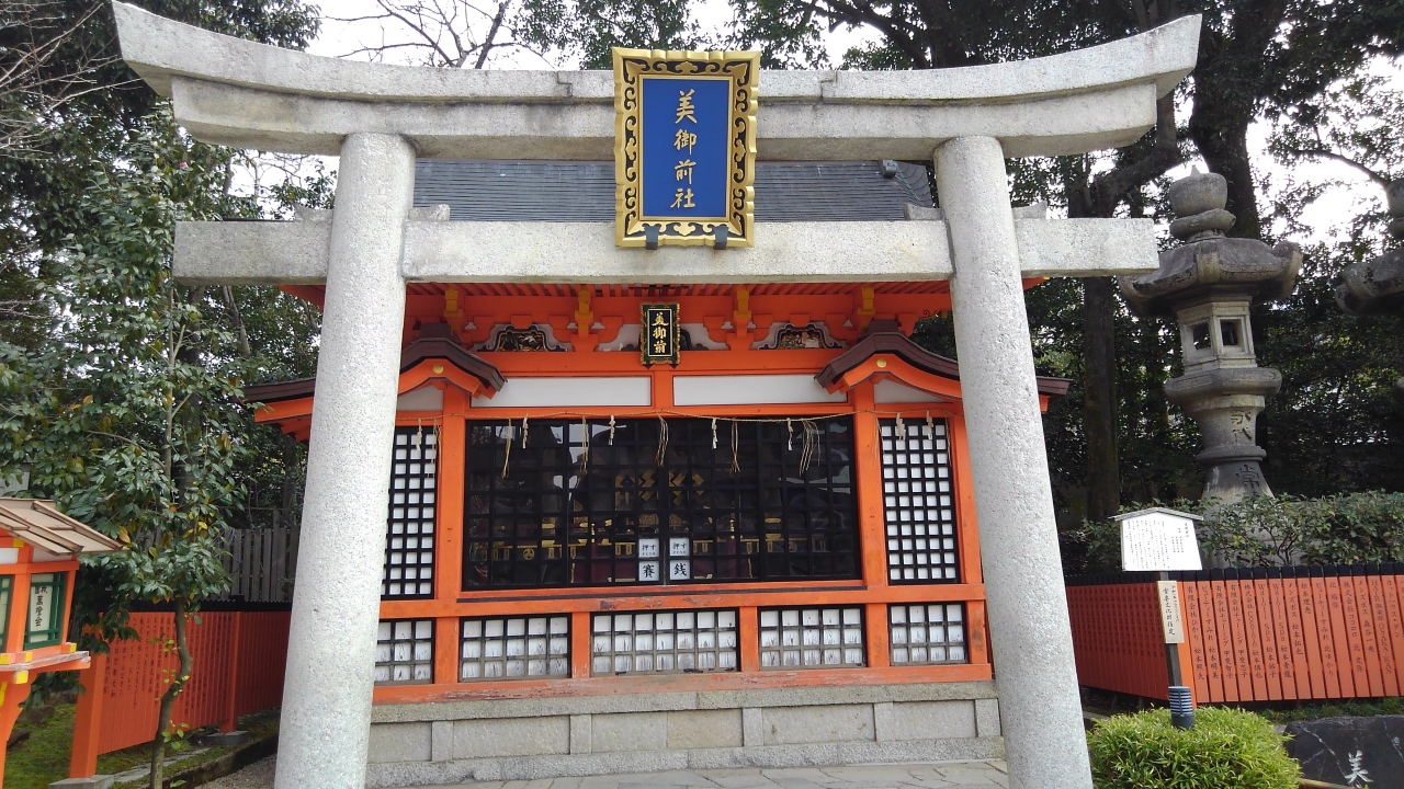 京都は八坂の祇園さん本殿の奥にある末社だそうです。美しい神をまつられているということでそれはそれでよろしいんですが、拝むと美しくなるというのはいかがかと思います。浅はかな女性心理につけこんでいると思うのですが。