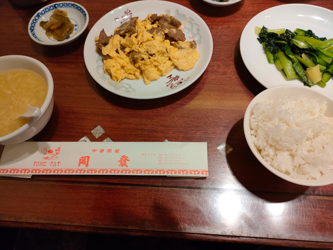 今回は、本日の日替わり(牛肉と卵炒め)をいただきました。卵炒めは中華メニューの中でも大好きなものです。