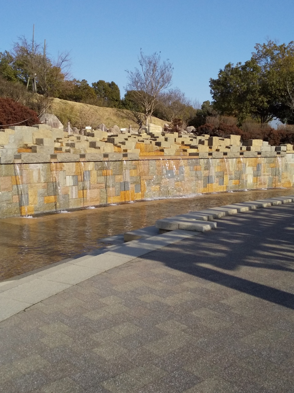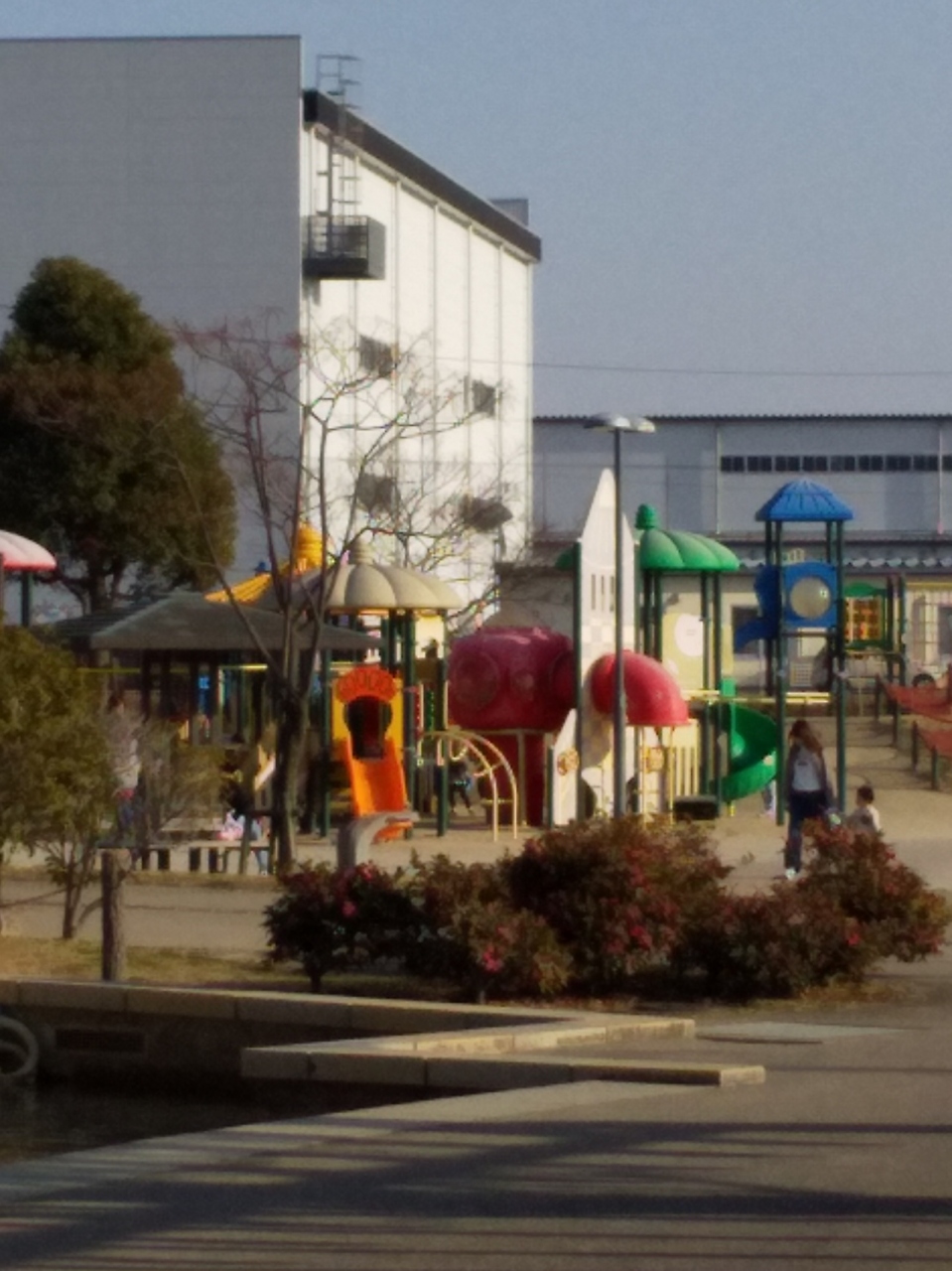 カラフルなこどもの遊具も揃っており、夏場は水遊びもできるようです。