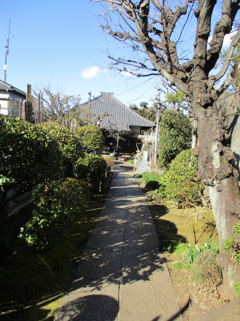 千駄木から谷中墓地方面に向かって散策していた時に、奥まった場所にある寺院に立ち寄りました。細い参道手前に、趣のある小さめの山門がありました。境内に入ると奥に本堂が建てられていて、静かでひっそりとしたお寺だと思いました。