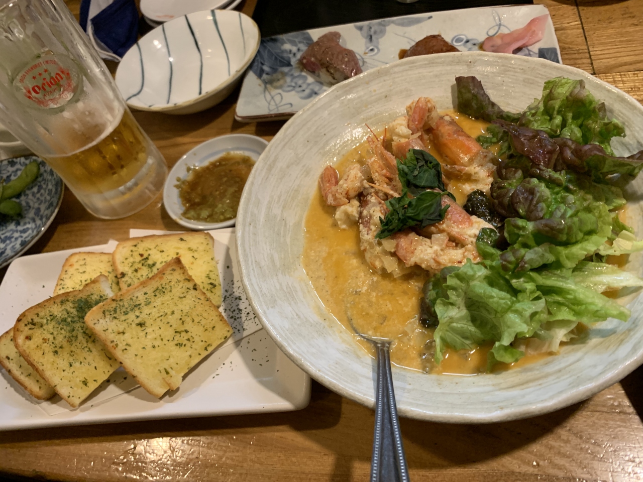 エビの味がしっかり染み込んだスープが美味しくてバケットにつけて食べると最高