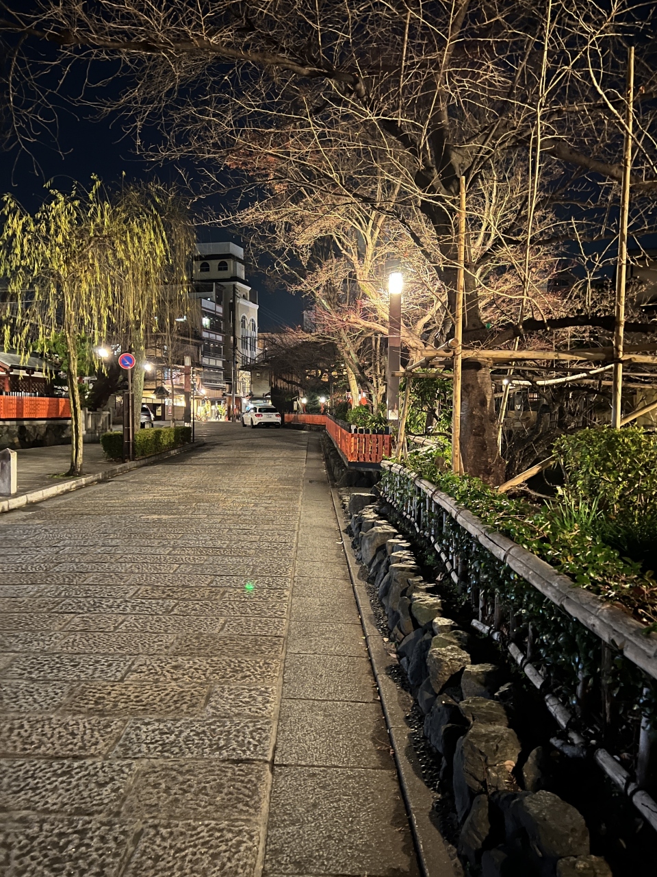 京都にはいろいろな川が流れていますが、白川もそのひとつ。既成市街地に流れているので、流域はきれいに管理されていて寺社仏閣をはじめとした観光名所もたくさんあるのが白川らしさ。この川沿いはお食事できるお店が多いのもよいですね。