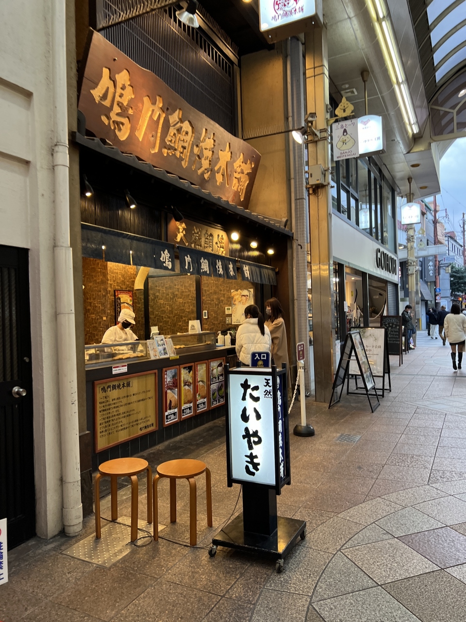 チェーン店の鳴門鯛焼本舗ですが、三条寺町店もシックな店構えです。値段は高いのですが、衣が美味しいのでついつい買ってしまいます。ここでいいのは1つずつかえるところですね。一人でもささっと買って買い食い出きるのはちょっと楽しいもの。