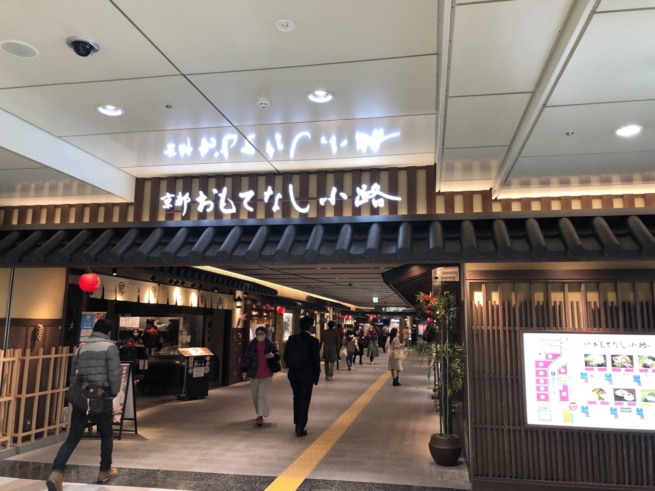 JR京都駅八条口・駅構内アスティ1Fにある「京都おもてなし小路」。京町家風の街並みが体感できて、京都駅構内で京都の味や雰囲気を楽しむことが出来ます。新幹線改札のすぐ近くの場所にあるので待ち合わせにも便利です。