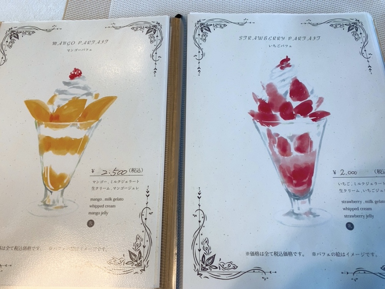 メニューも豊富で、マンゴー、いちご、バナナ、メロン、マロン…など色々とありました。 さすがに、メロンとマンゴーのパフェが1番高かったです。