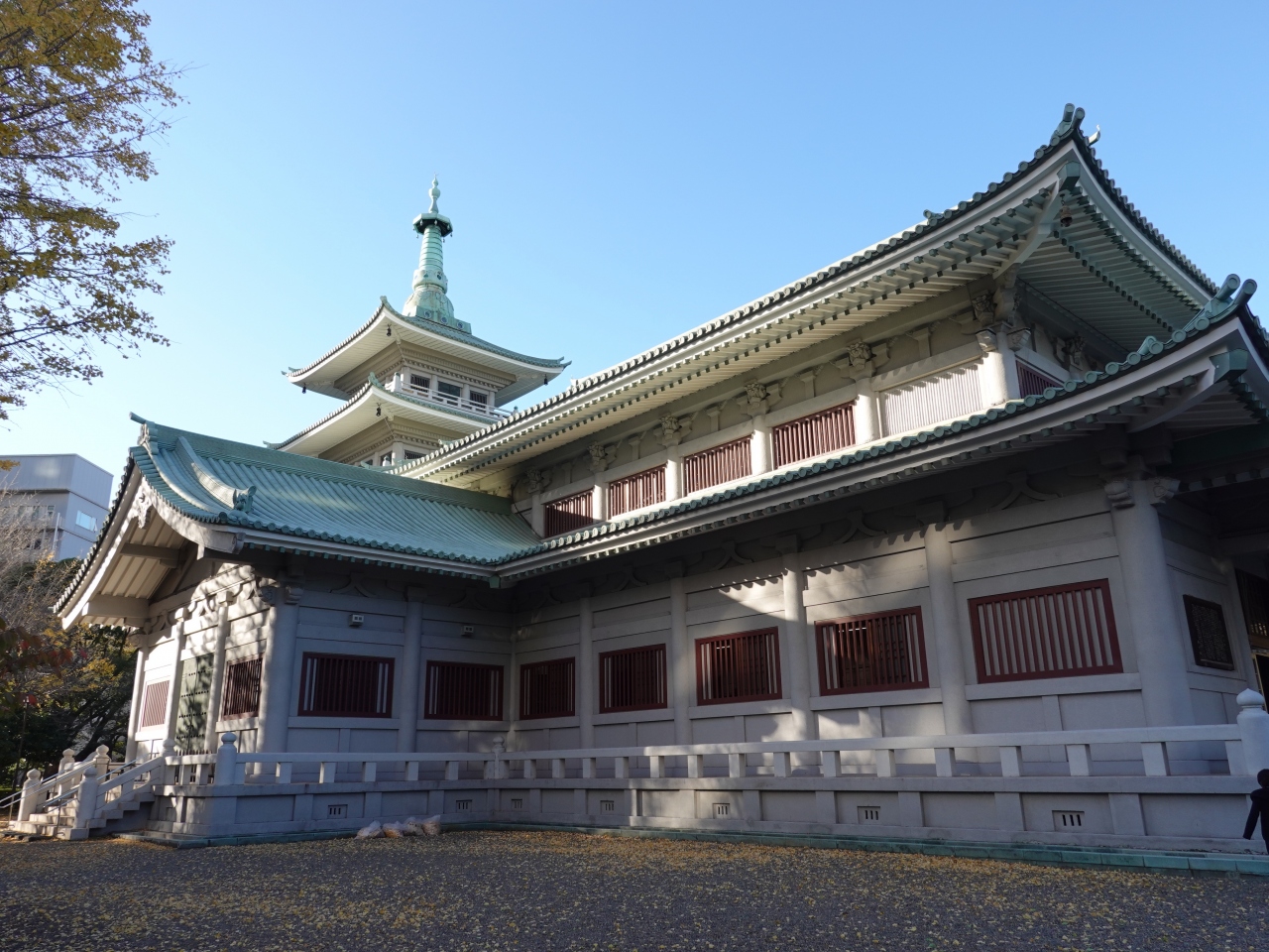 横網公園内に建つ「東京都慰霊堂」は、関東大震災の被災者と東京大空襲の犠牲者の遺骨を納める霊堂です。鉄骨鉄筋コンクリート造の4階建ての建物で、40.9メートルの高さの慰霊塔を持ちます。白を基調とした美しい外観で、平成11年には東京都の歴史的建造物に選定された、見ごたえ充分の建築物です。