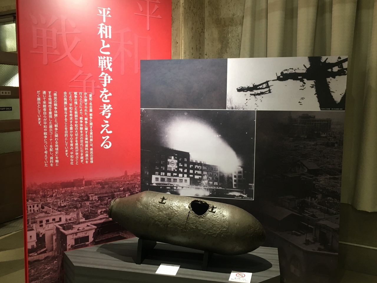一階は戦争に関する資料館となっていて、第二次世界大戦に関する資料や当時の暮らしなどが展示されています。