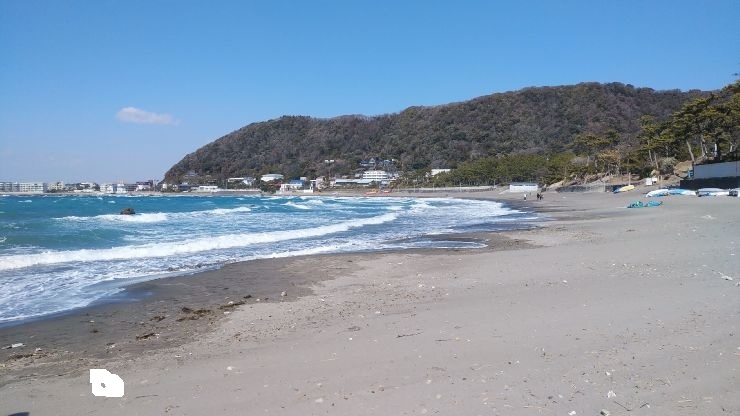 逗子駅から南に3.5キロくらいのところにある海水浴場。バス便あり。