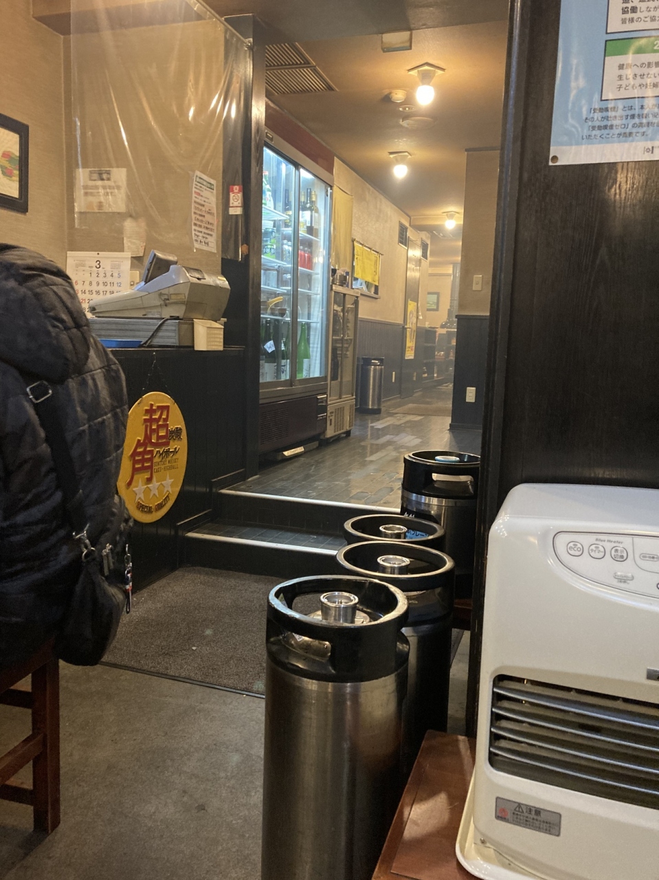 お店の暖簾をくぐると、煙がモクモクしていて、昭和の居酒屋風のカウンター席とテーブル席、座敷席があるのは他の炭屋と同じですが、ここが一番モクモクしているかも。