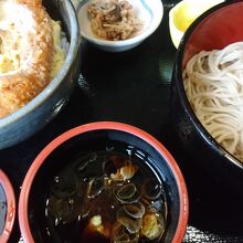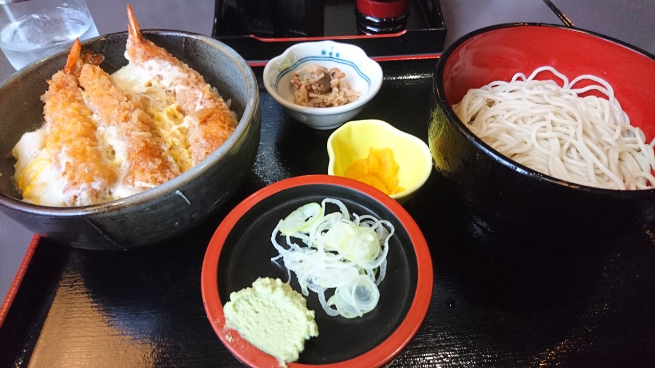 札幌市の地下鉄東西線の西18丁目駅から歩いて5分少々のところにある蕎麦屋です。ここは、蕎麦の種類も多いのですが、ランチタイムのセットメニューがリーズナブルでボリュームがあります。何度も訪れているのですが、この日もランチのセットメニューにしました。エビ重と蕎麦のセットです。蕎麦は、あたたかい蕎麦もあったのですが、もりそばにしました。大きなエビ天が3本、それが卵でとじられたエビ重に丼に入ったたっぷりの蕎麦です。エビ重は、これぞ蕎麦屋の丼という感じのおいしさです。それが、冷たいもりそばに合っていいバランスのおいしさです。昼時は、サラリーマンらで込み合い人気のお店です。