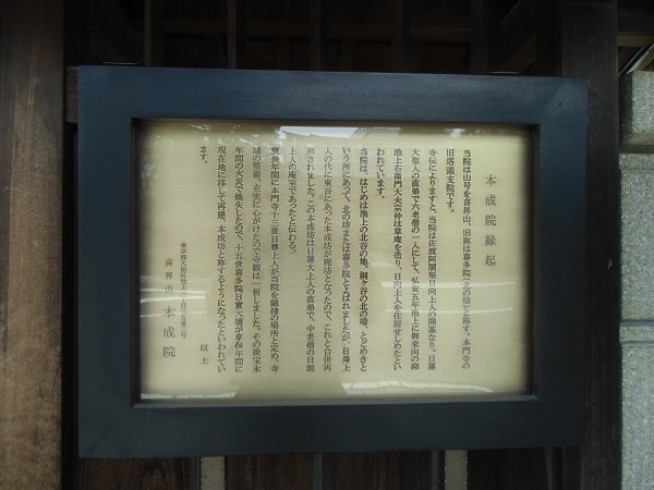 説明板によると、弘安5年(1282)日蓮聖人の直弟子 日向聖人の庵室として開創。
