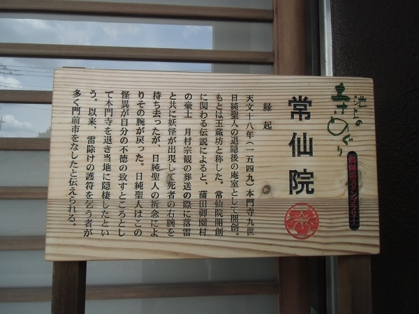 説明板によると、天文18年(1549)本門寺九世日純聖人の退隠後の庵室として開創。