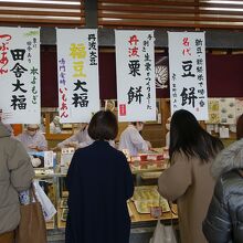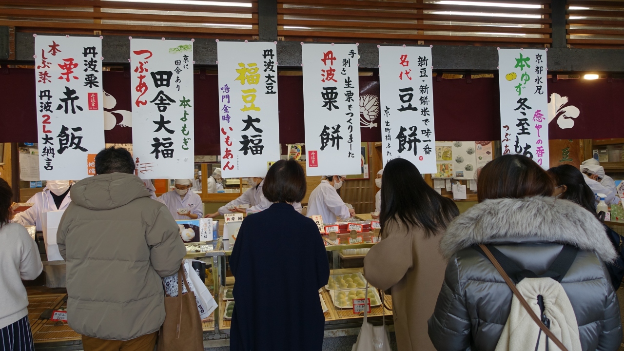 訪れた日は丹波産の新栗を使った栗餅や栗赤飯も並び、女性を中心に観光客や地元客で長い行列が出来ていた。買うことが出来なかったが、口コミを見るととても美味しいらしい。