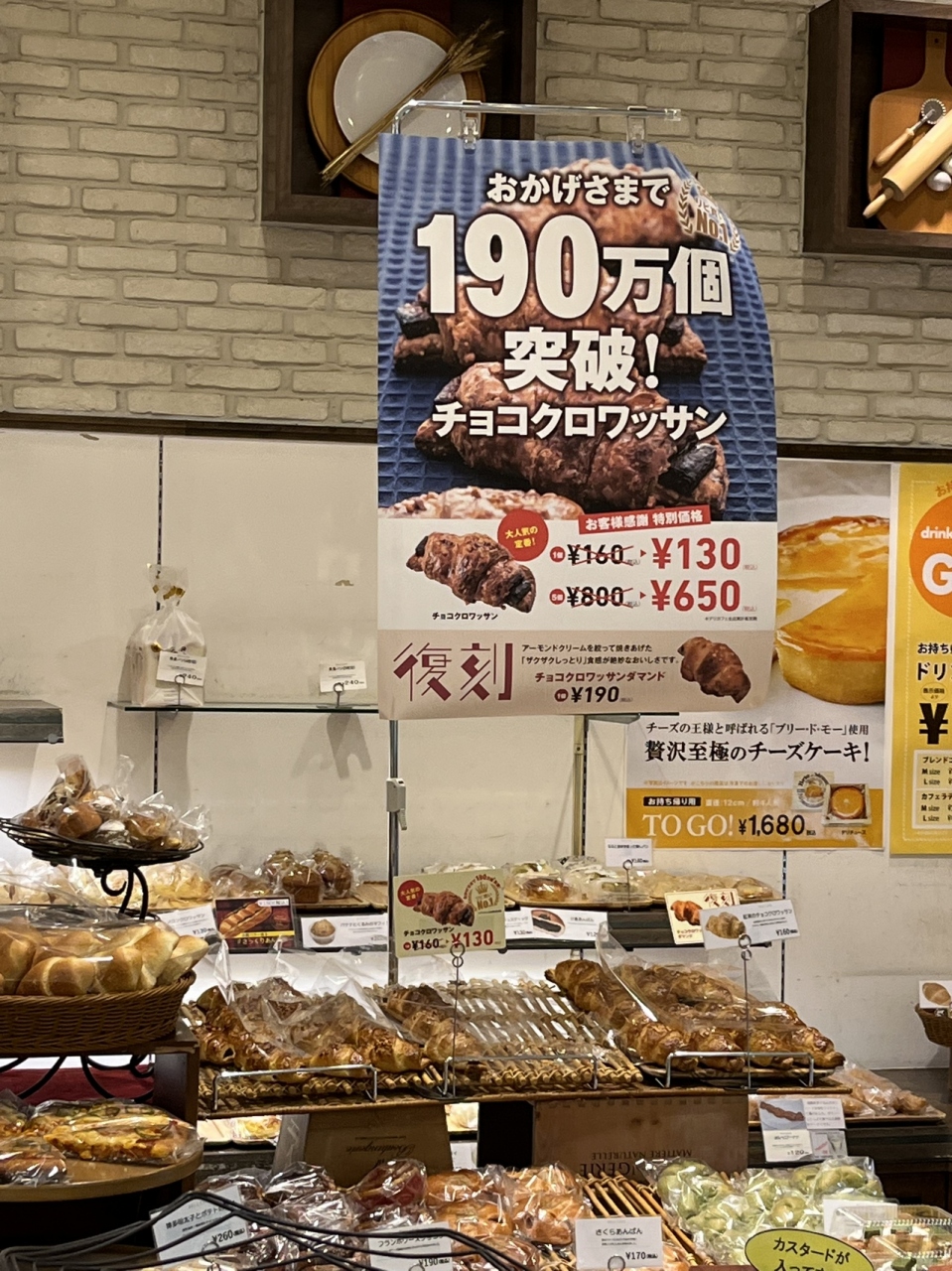 チョコクロワッサン お客様感謝特別価格 ¥160が ¥130