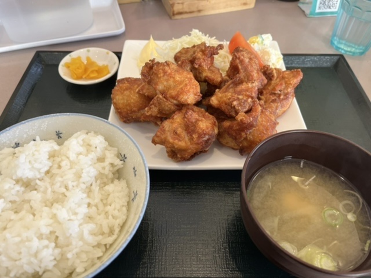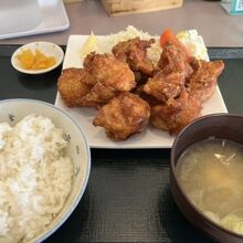 ザンギ定食と美瑛とんかつで迷い、ザンギ定食を注文したところ、ゴロゴロの大きめの唐揚げが10個位乗っかっていました!
