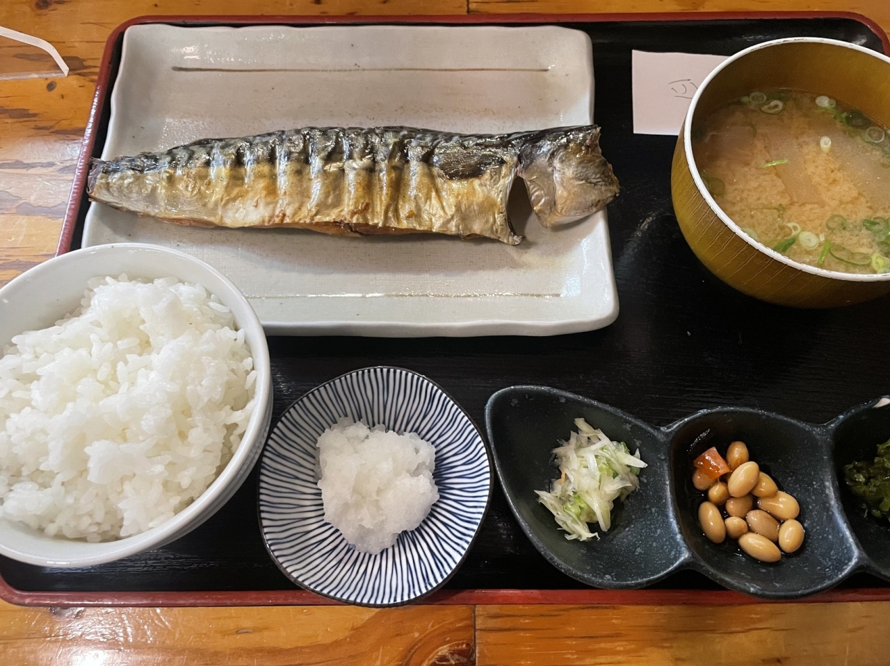 この日の日替わりのお魚は鯖の塩焼き。他にちょっとした副菜3種とご飯味噌汁、大根おろしが尽きます。嬉しいサービスとして食べ放題の梅干しがあります。小ぶりですが皮が柔らかく、お魚が塩辛くてもつい2.3個食べてしまう。