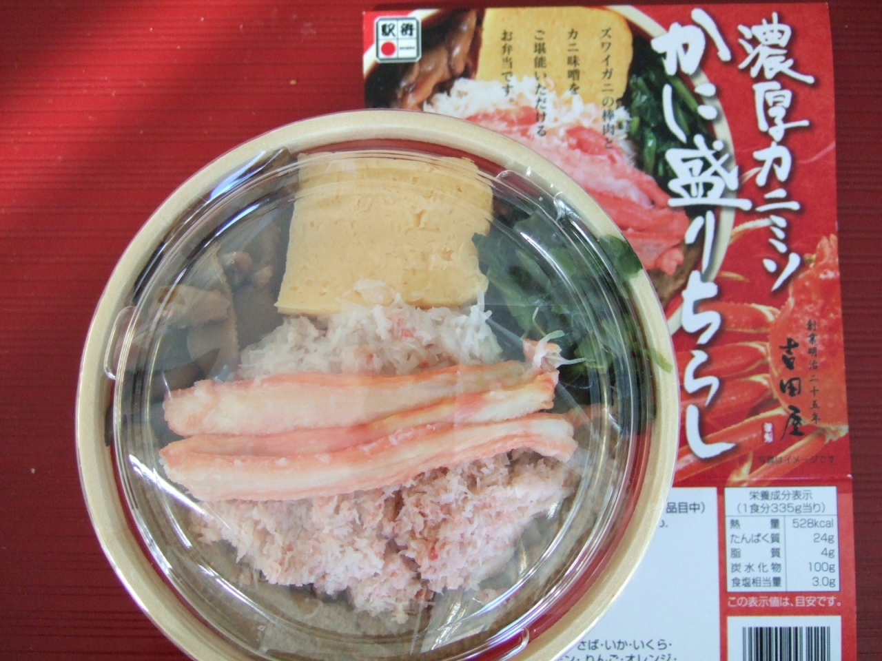 東北新幹線の八戸駅にある駅弁屋さん。小唄寿司が有名ですが、今回は「濃厚カニミソかに盛りちらし」を購入しました。