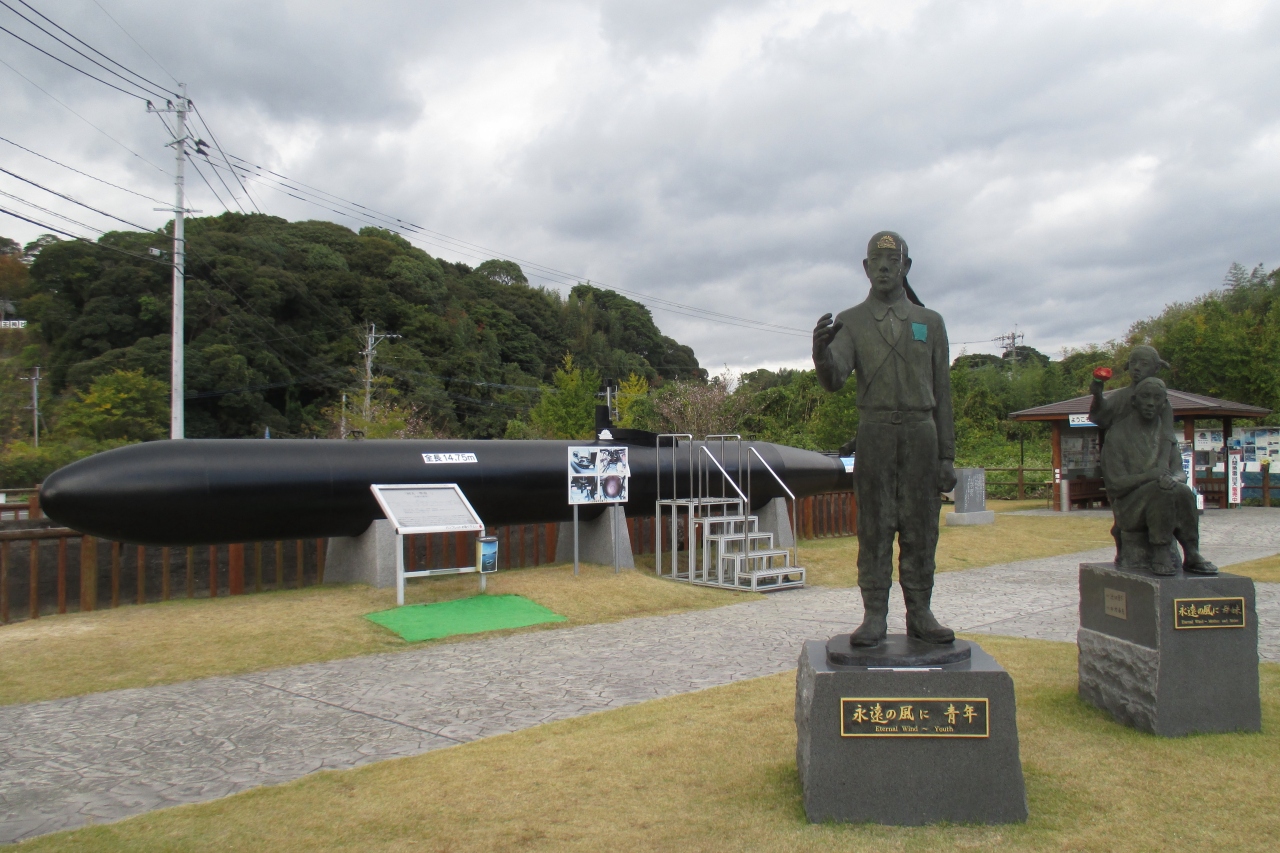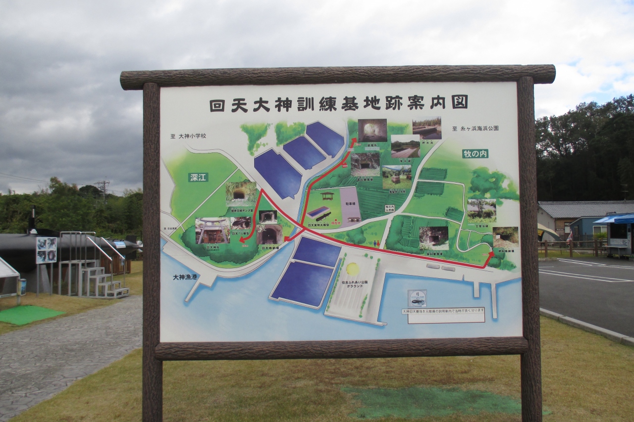 人間魚雷「回天」大神訓練基地跡の一部が、回天大神訓練基地記念公園として整備されていました。この訓練基地が稼働を開始したのは1945年(昭和20年)4月25日だそうです。東京は連日の空襲で焼け野原になっていて、敗色濃厚どころか、もう敗戦そのものの状況ですよね。そんな戦況なのに、まだ玉砕戦を考えていた異常なリーダーを生み出さないためにも、この記念公園が生かされることを望みます。ここで訓練された隊員が出撃することなく終戦となったことが唯一の救いです。