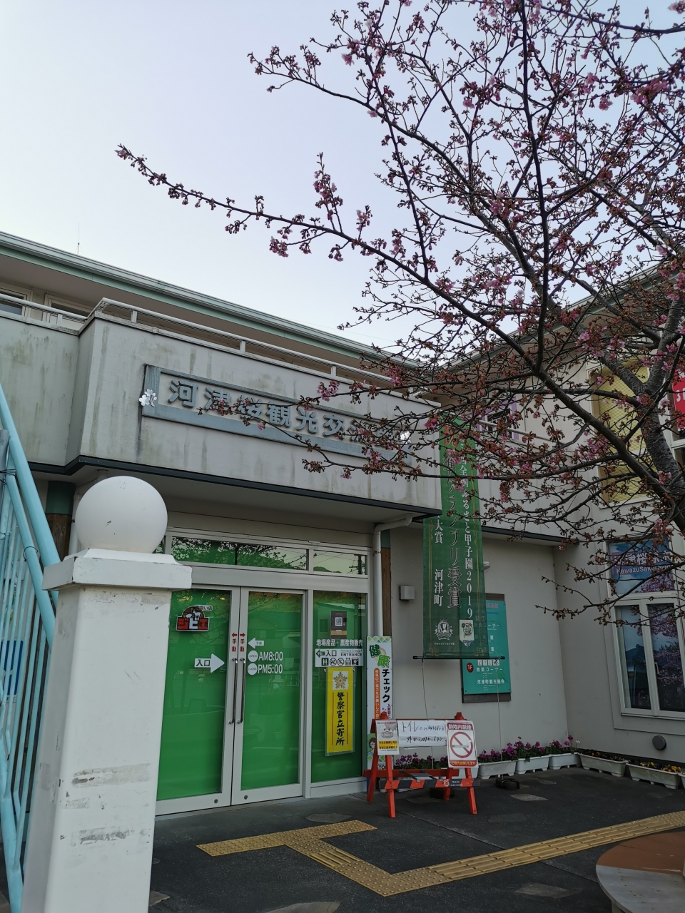 河津桜を見に早春の伊豆ドライブ。早朝に河津町へ行きました。来宮神社に参拝した後、河津桜観光交流館に立ち寄りました。早朝でしたので施設は開館前です。河津桜祭りの最中でしたので観光客は多数でした。綺麗な施設です。大型バスの駐車場が併設されてました。一般客は有料の別駐車場に止めるみたいです。
