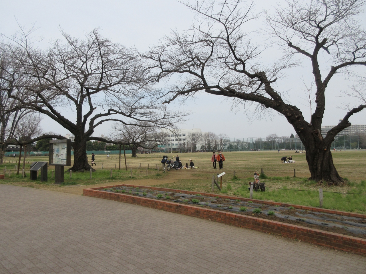 三鷹駅から2km足らずの伏見通り沿いの公園です。休日午前車で、公園内の有料駐車場に行きましたが満車だったので、向かいのコインパーキングに停めました。テニスコート、BBQ広場、遊具広場があります。特徴は自由に遊べる広い原っぱです。野球やサッカーなどができるスポーツ広場もあります。スポーツ広場では少年野球の試合をしていました。園内の歩道沿いに桜の大木がありました。一周歩くだけでもかなりの距離になりそうです。