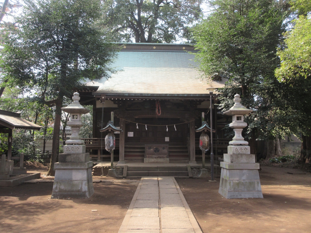 武蔵境駅から南東へ二十数分歩いたところにあります。連雀通りに面していて隣に井口院があります。1672年に連雀前新田開発を行った井口家が村社として建立しました。木造銅板葺屋根の社殿がある境内は掃き清められていました。イチョウの大木などが生えています。連雀通りの歩道沿いに庚申塔があり、生花が供えられていました。篤く信じられている様子を感じました。