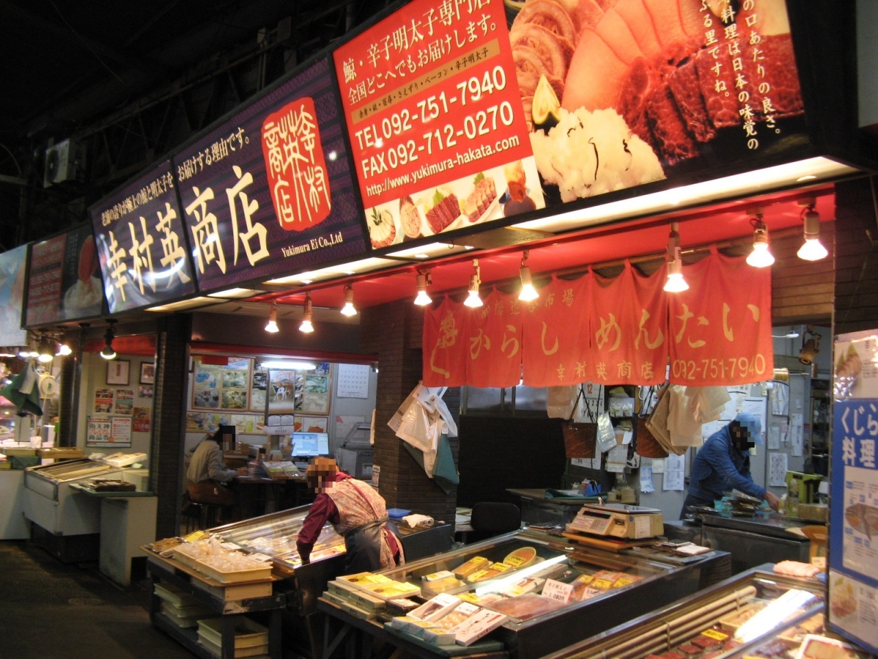 地下鉄渡辺通駅から歩いて3分ほど、柳橋連合市場の入り口から入ってすぐのところにあります。明太子や鮭、干物、クジラ肉などを扱っています。明太子もサンマや鰯、烏賊などがあってすべて自家製だそうで、そんな中から鰯明太子を購入(2160円)しました。鰯の腹を割かずに頭と内臓をはずして明太子を詰めたもので焼いても明太が飛び出さず、香ばしい中に辛さがマッチしてとてもご飯がすすみました。