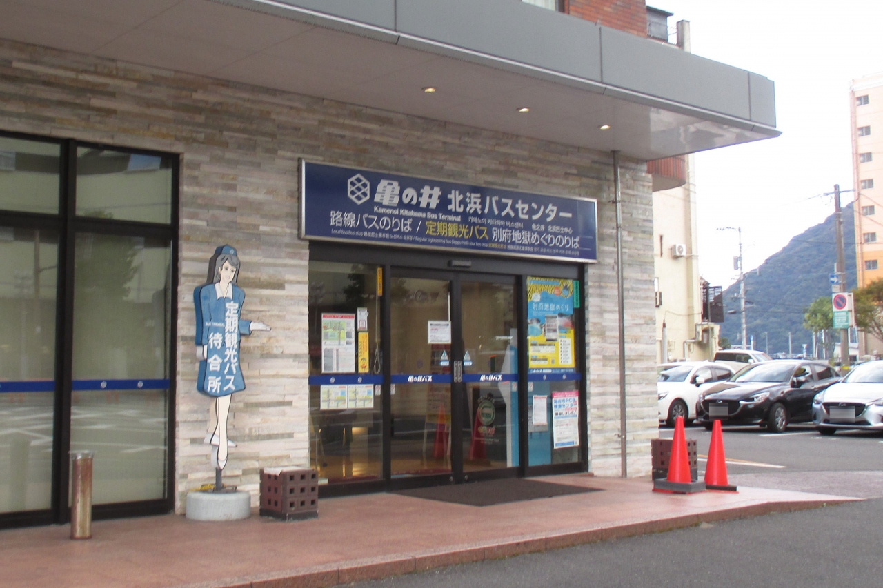 亀の井バス 北浜バスセンターは西鉄リゾートイン別府の1階にありました。余分なことですが、西鉄インはよく見掛けますが、観光地にあるとリゾートが付くのですね。ここは路線バスの停留所でもありますが、定期観光バス「別府地獄めぐりコース」の出発点だそうです。ここに泊まれば移動時間ゼロで地獄に向かえるわけですね。