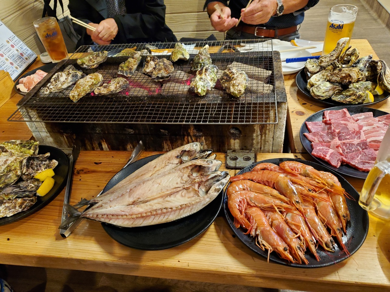 フィッシャーマンズホテルに宿泊して、夕食をここで食べました。焼き方が悪いと煙が立ち込め、服が臭くなりますから、洗える服で行くことをお勧めします。自分は大丈夫でも、登良利のお客さんが煙を発生させます。海産物はとっても新鮮でした。