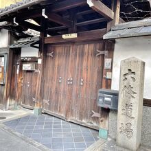東本願寺の離れ境内である渉成園のすぐ北側にあります。非常に小さい表札しか目印がないので、気づきにくいです。通常非公開のようで、門は閉じられていました。かつて時宗六条派本山である歓喜光寺の前身があり、六条道場と呼ばれていたことから、山門右手には石碑が立っています。