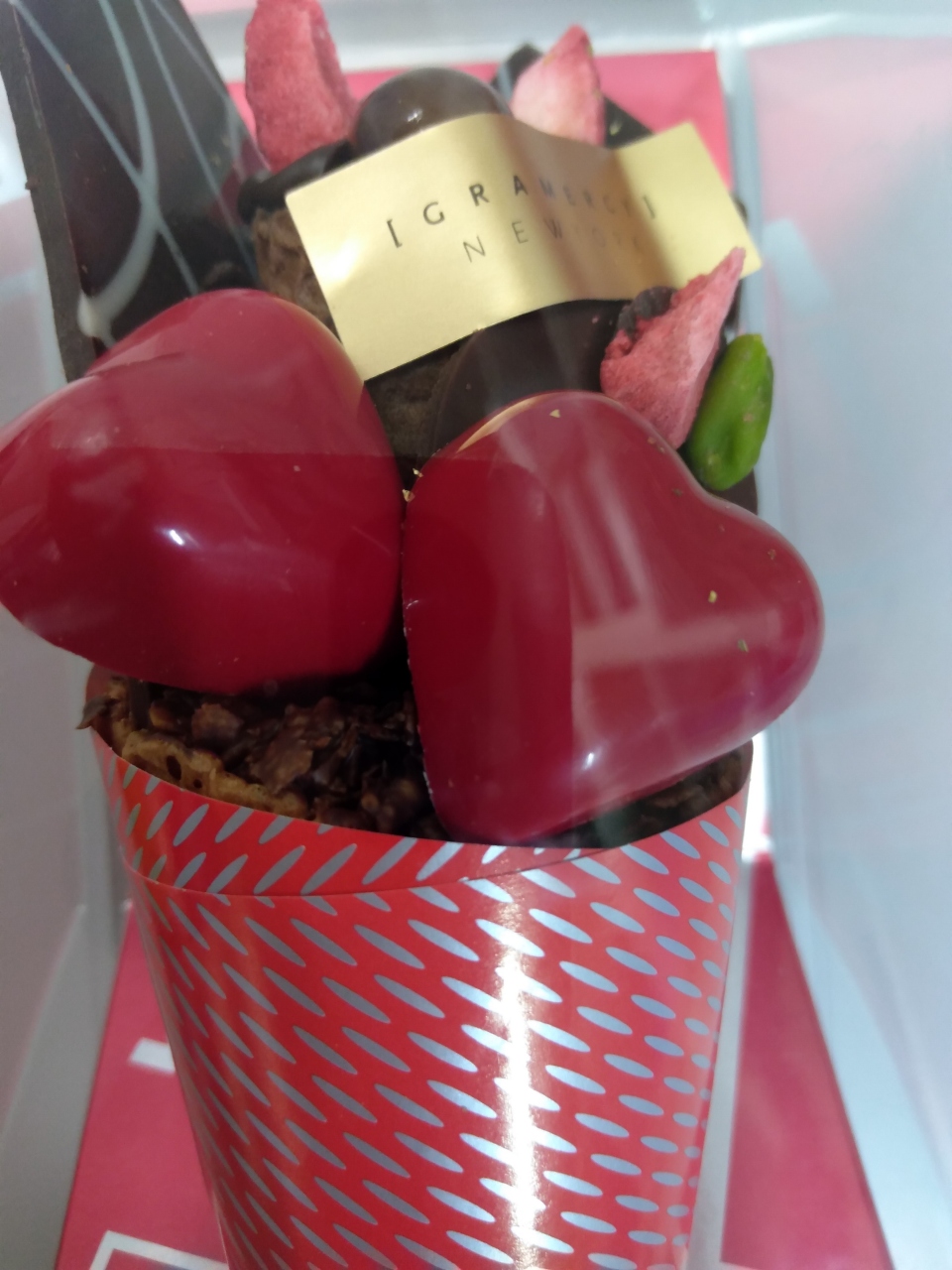 池袋西武のデパ地下、ケーキなどの菓子が集まっている売り場にあります。生ケーキもあるけど、チョコや焼き菓子などもあります。花束みたいなチョコのブーケを購入。見た目がなんといってもかわいい。赤色がアクセントになっています。食べるのがおいしいぐらい。少し日持ちがするので飾っておきたいかわいさ