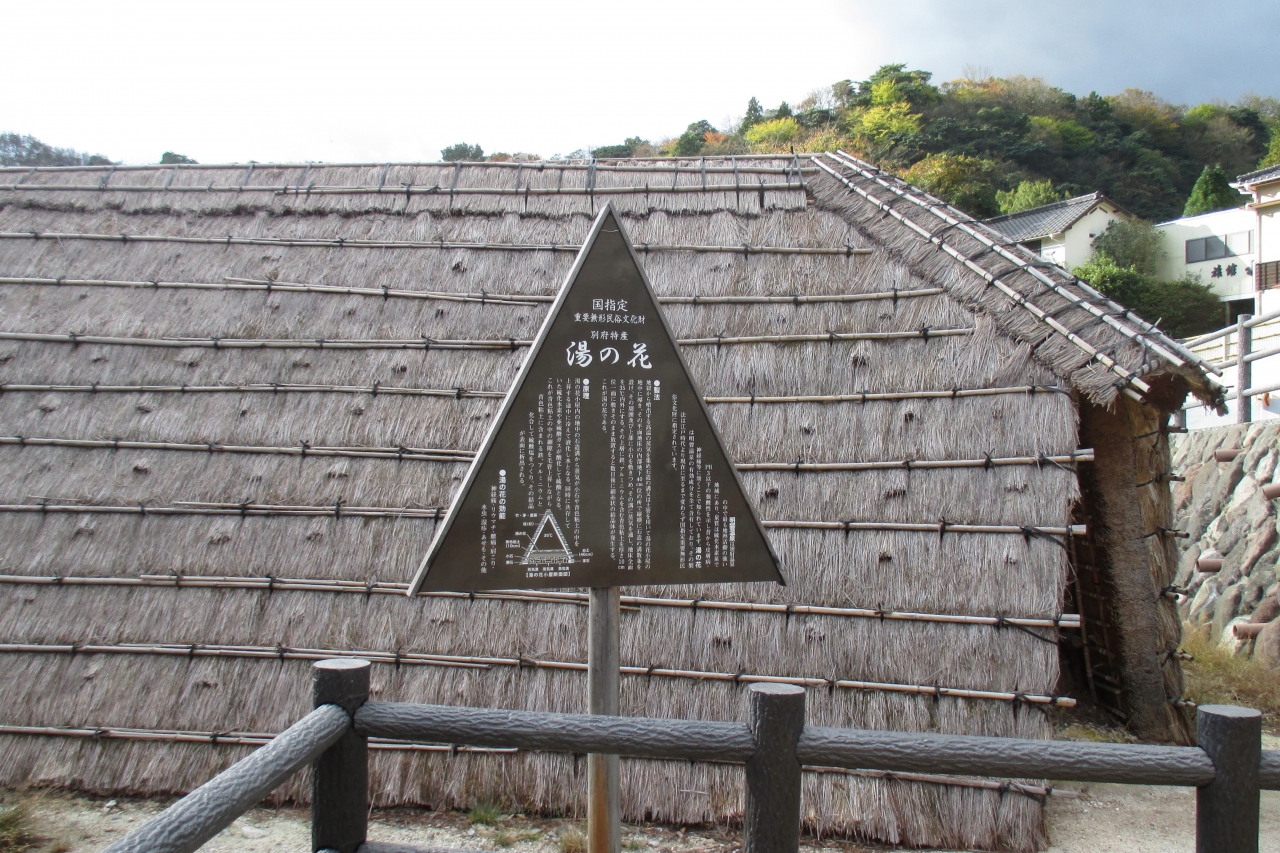 湯の花小屋の説明によると、この辺りは地下30cm辺りには温泉脈があるのだそうですね。30mの間違いではないのかと二度見してしまいました。また、小屋の中には、この土地特有の青粘土を敷き詰めてあるそうですね。化学式のない時代に自然の観察から学んだのでしょうが、これも必要は発明の母といえるのでしょう。