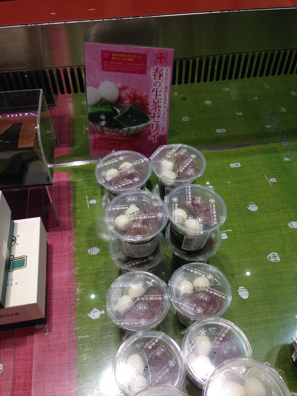 京都へ行き駅近くに宿泊する時は、何時も此処の抹茶ゼリーを買います。甘さ控えめの餡子と抹茶ゼリーのバランスが丁度良く、白玉団子も入っていて小腹が空いた時には最高の軽食です。今回は季節の“春の生茶ゼリー”にしました。